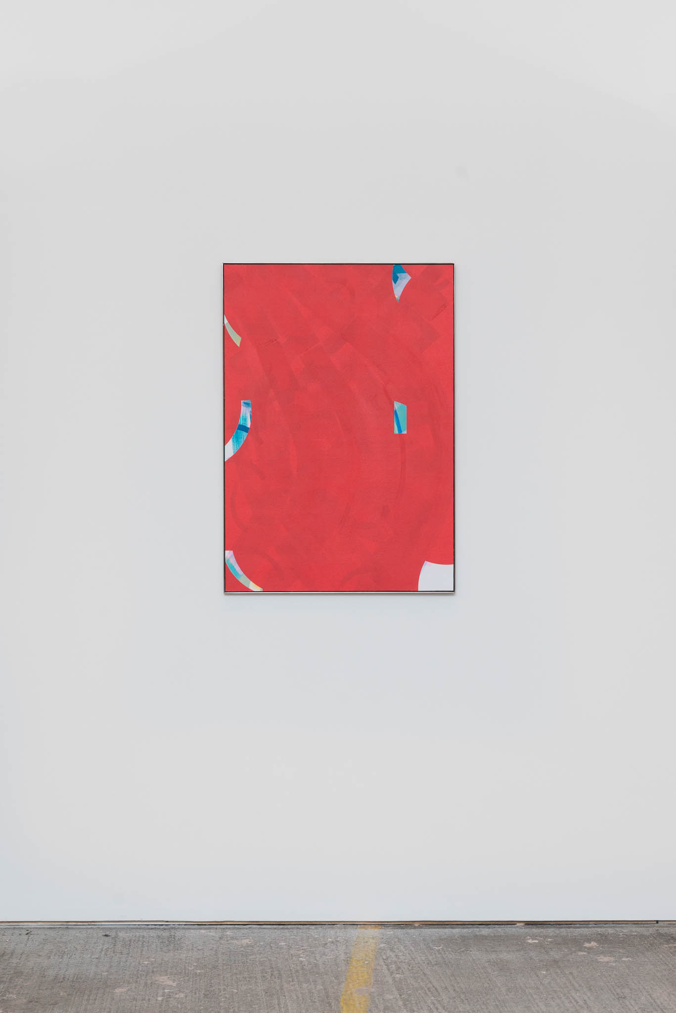 Berlin-based artist Dennis Loesch, who was trained in Interdisciplinary Fine Arts at the Städelschule in Frankfurt has not exhibited in the UK before and from the press release for Merge Visible we learn that Loesch’s imagery from this, and previous projects (not restricted to painting), present an engagement with “display management” and that he has a “fascination with the digital”. We also read that this recent work “Reveals a new discourse for the artist that investigates the interplay, temporal connections and history between digital imagery and classical painting technique”.