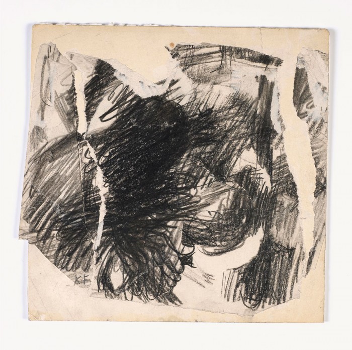Only in ‘Clump 1997’ does the hovering form succeed in fully breaking free, mutely suspended in an empty expanse of pale grey. Illuminated from the top left and casting a soft shadow below, this nervous cluster of brush marks, suggestive of a meteorite or a crushed ball of paper (and rendered as though the paint had collapsed in on itself) exercises a powerfully ambiguous presence.  Although his abstract language is resistant to ‘reading’, this existential still life is perhaps the closest his work comes to metaphor: are we witness to an unfolding or an aftermath? To something or nothing?
