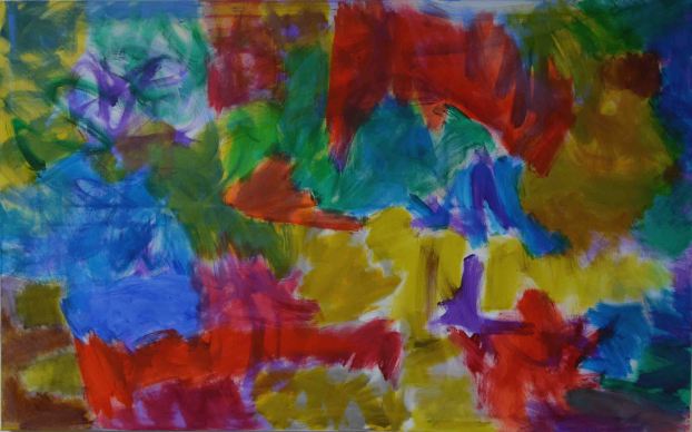 Not that Williams’ Vibo is in anyway inferior because the surface is more a part of its content, or because the forms or shapes are clearer, perhaps more determined than in Sarah’s Tears. In a way, Williams is not setting total store by form either, because I do not find the linear strokes or broader shapes over-engineered. The right balance has to be found to allow them to get us into the colour. But it’s a complex business this. You cannot dismiss the importance of these shapes to the overall feel and structure of the painting. But it has been observed and I agree, that the shapes in Vibo, are less motif-like than some other forms previously employed by Williams. Colour is the key for Williams. He has made this abundantly clear, and for me it could explain the use of motif as a vehicle for colour, but it could equally explain the act of expanding and dissolving the motif to further emphasise the role of colour. And the colour in this painting is actually quite subdued. There are lots of colours, some quite bright, but also tinted, and even checked and mediated by a range of different browns. It is a testament to his knowledge and ability that with all this variety, nothing jumps out or dominates your vision. But nor is it flat, or relying on a sort of equal all-overness. You can read bright colours as being further back, like the turquoise (middle left), with a tinted umber coming in over the top of it (quite unusual in itself). And yet if you go to look at the pink form to its right, the one hemmed in by the lilacs, the turquoise has reasserted itself again. The spaces are not fixed, but on the move depending on where your eye rests. It seems appropriate to stress that this is not optical but visual. It is about free movement, whereas optics produce the same effect each time, often in the same way for every viewer.