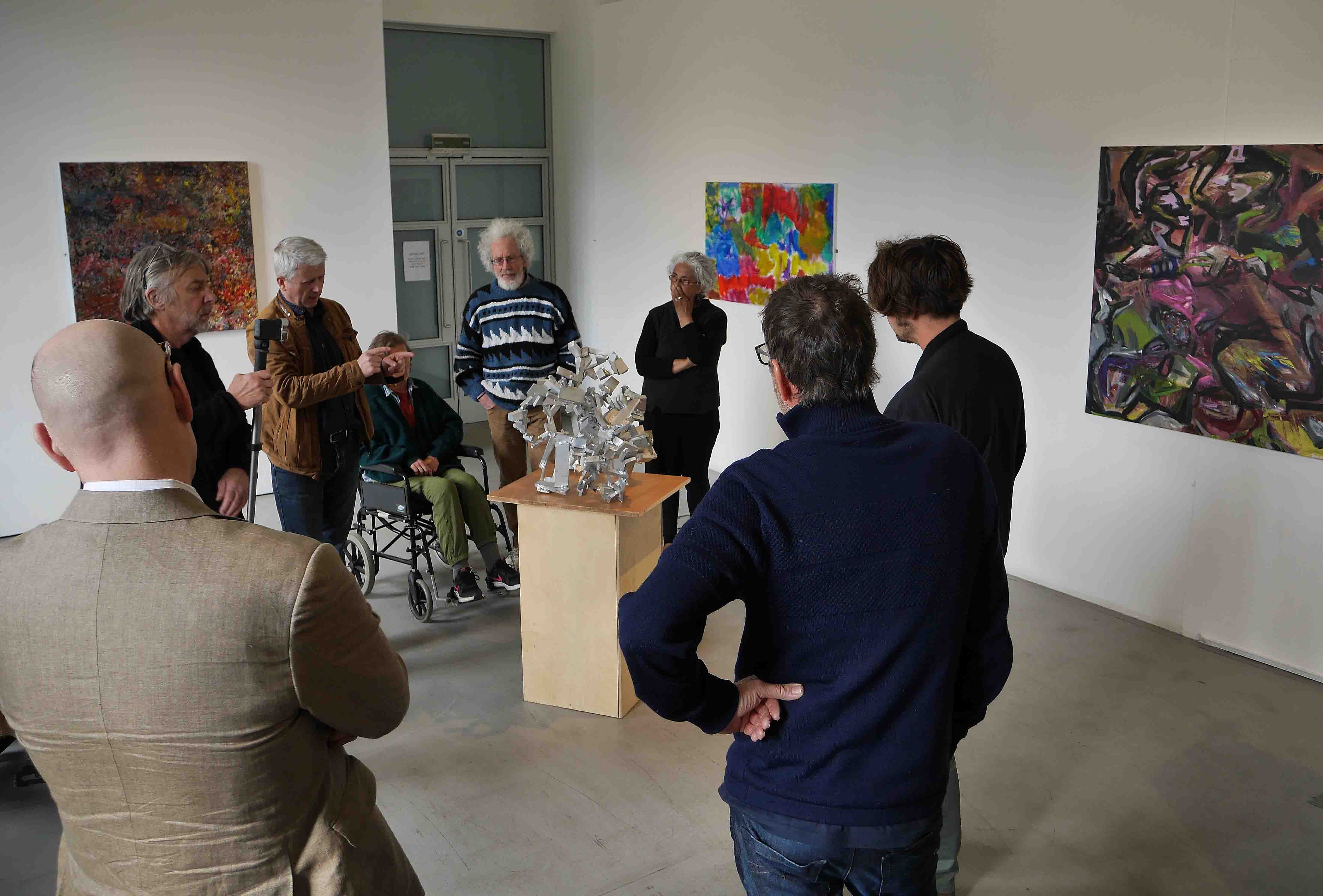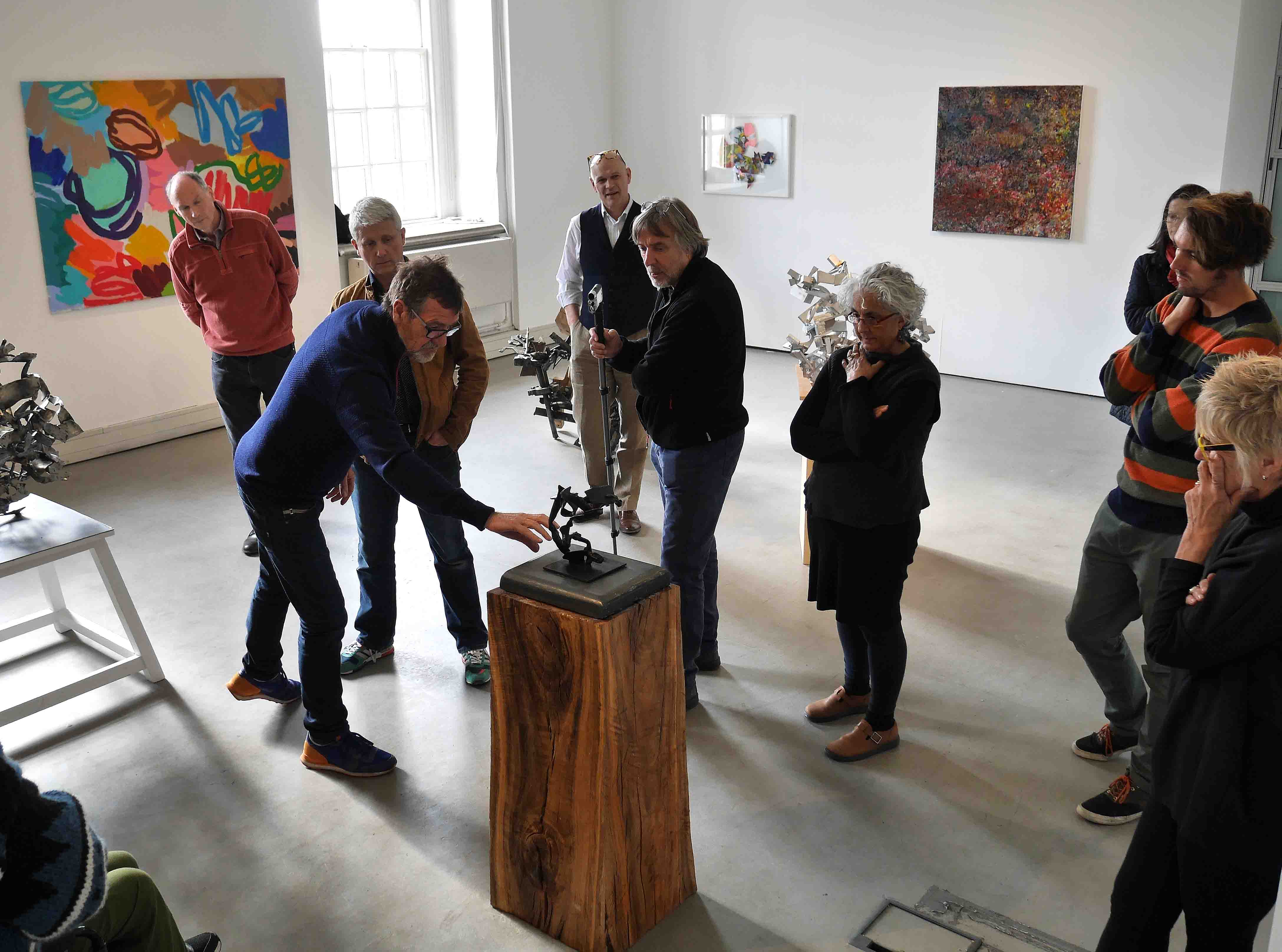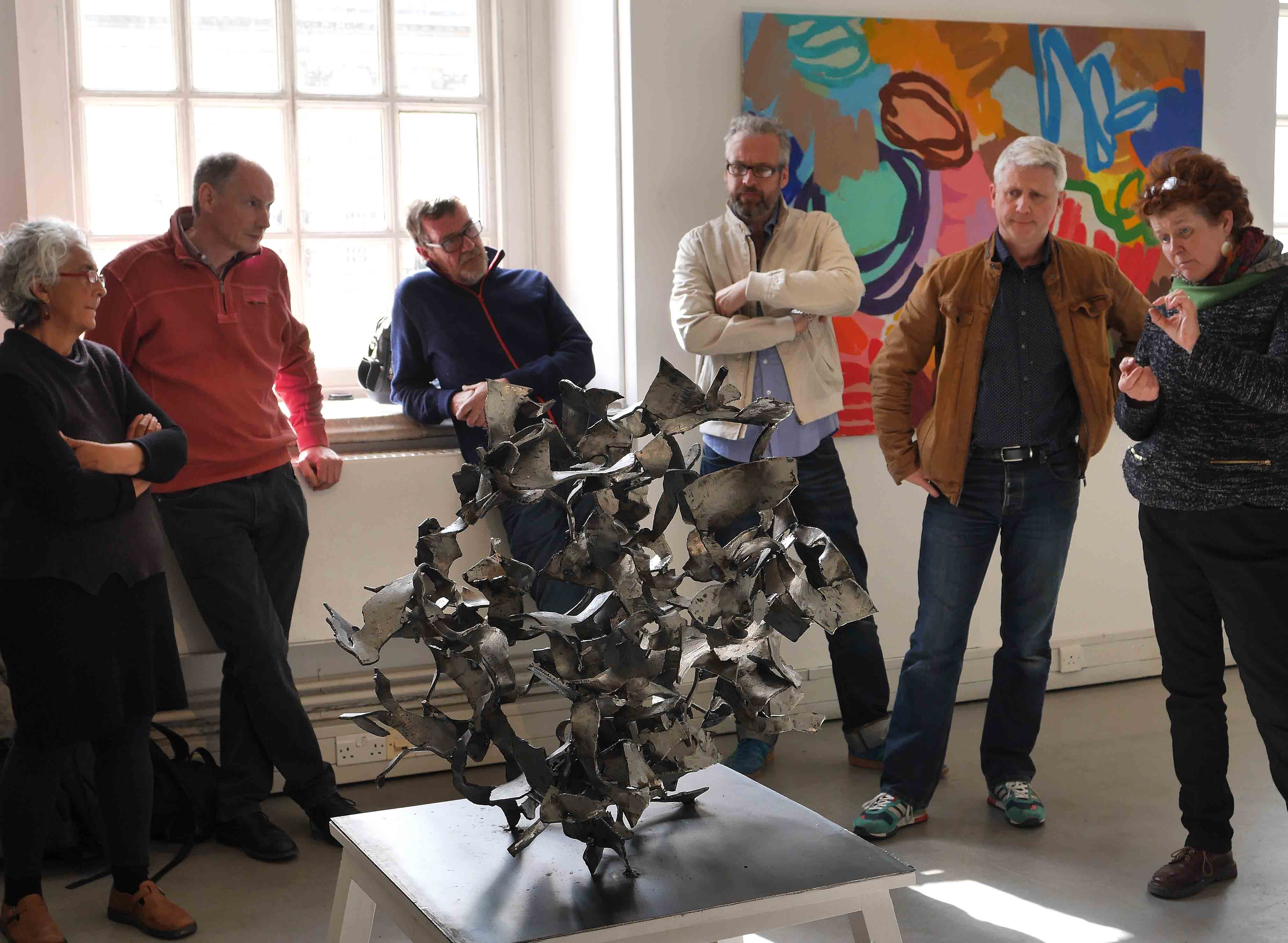 Anthony Smart, Harry Hay, Noela James, John Bunker, Emyr Williams discussing ‘Insignia’ by Robin Greenwood, with ‘Vibo’ by Emyr Williams in the background. All photos by John Pollard.