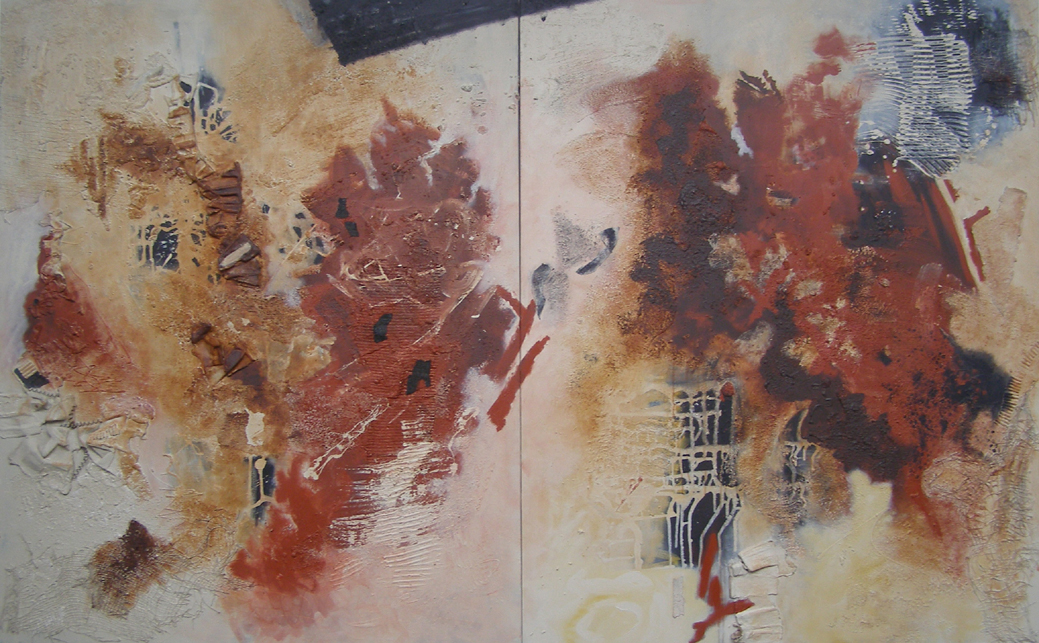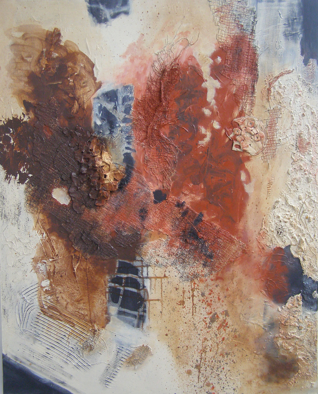 These paintings contain the duality of chance and choice, what in music John Cage talked about as ‘considered improvisation’. Nick has allowed us to witness a sensual engagement with material and is inspired by painters such as Burri, Tapies, Millares and Kiefer whom he refers to as ‘matter’ painters.