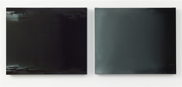 “Black milk of daybreak we drink it at evening we drink it at midday and morning we drink it at night… ,” 2016, oil on canvas, diptych, 21.5 x 53 inches