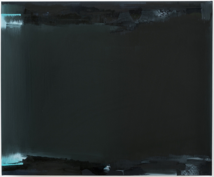 They have much more to do with staring at than looking for, in the terms I’ve discussed elsewhere with regard to Uta Barth’s work.[12] You can look at a space searching for a particular thing, or you can stare at it and see what emerges. There is nothing to look for here but a lot to look at. Dark colors literally slow down the heart. At the same time they cause anxiety unless you stop trying to find something. Video screens have been mentioned but I’d also bring up the tiny paintings of Peder Balk (1804-1887,) whose work I only saw for the first time a couple of years ago when the National Gallery in London did a show. Small paintings of the foggiest and coldest and roughest part of northernmost Norway—thinking of it causes shivering—which are like Haynes’ paintings in being little rectangles filled with—embodying—force. Art may always aspire to what other mediums can do—in painting’s case, therefore, to music and/or to the photographic, for examples—and also always to the invisible. Forces and movements that one may contemplate, or otherwise be open to, that are visibly there, not traces of actions but actions still in motion, depths that won’t give you time to let you tell your mind when not to be moved in and around. When it comes to controlling how you see them you haven’t got a prayer.