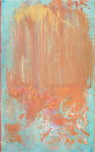 Frank Bowling, ‘Fishes, Wishes in Summertime Blue’ was at Hales Gallery, London, 8th September to 28th October 2017