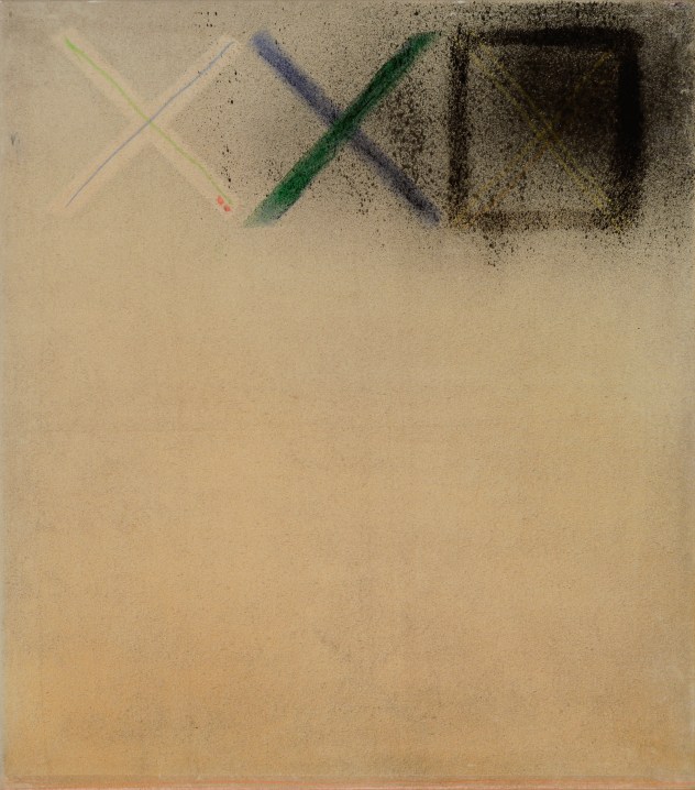Much as I agree with the last bit, I don’t agree about drawing in this case being a way beyond the formalist aspects of this work. Although I think there is a strong place for it, I’m much less of a fan than John is of drawing in abstract painting, and I think often it is a limitation. I think Gary’s drawing sometimes both organises and circumscribes the whole content of the work in ways that are really not very inventive, as in the familiar set-up of “Grey Painting” of 1983: