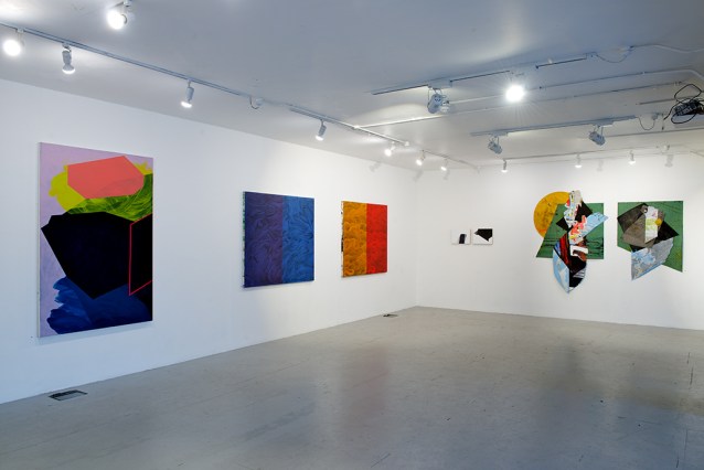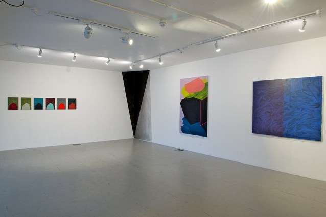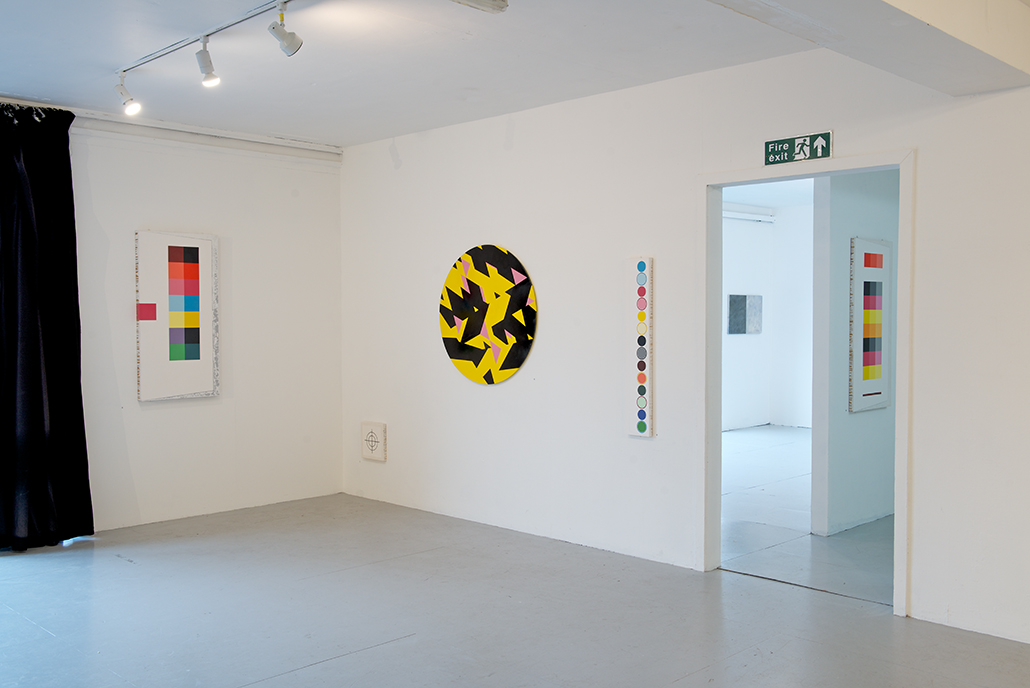 The intention for the show as a whole appears to make a continuity argument about a particular kind of abstract art, which the press release has “identified as exploring the possibilities inherent in space, colour, line and edge, and seek(s) to develop a conversation around the language of paint. The exhibition presents a collection of paintings that have been developed through pre-meditated and choreographed processes; in developing the images, the artists favour intention over accident.”