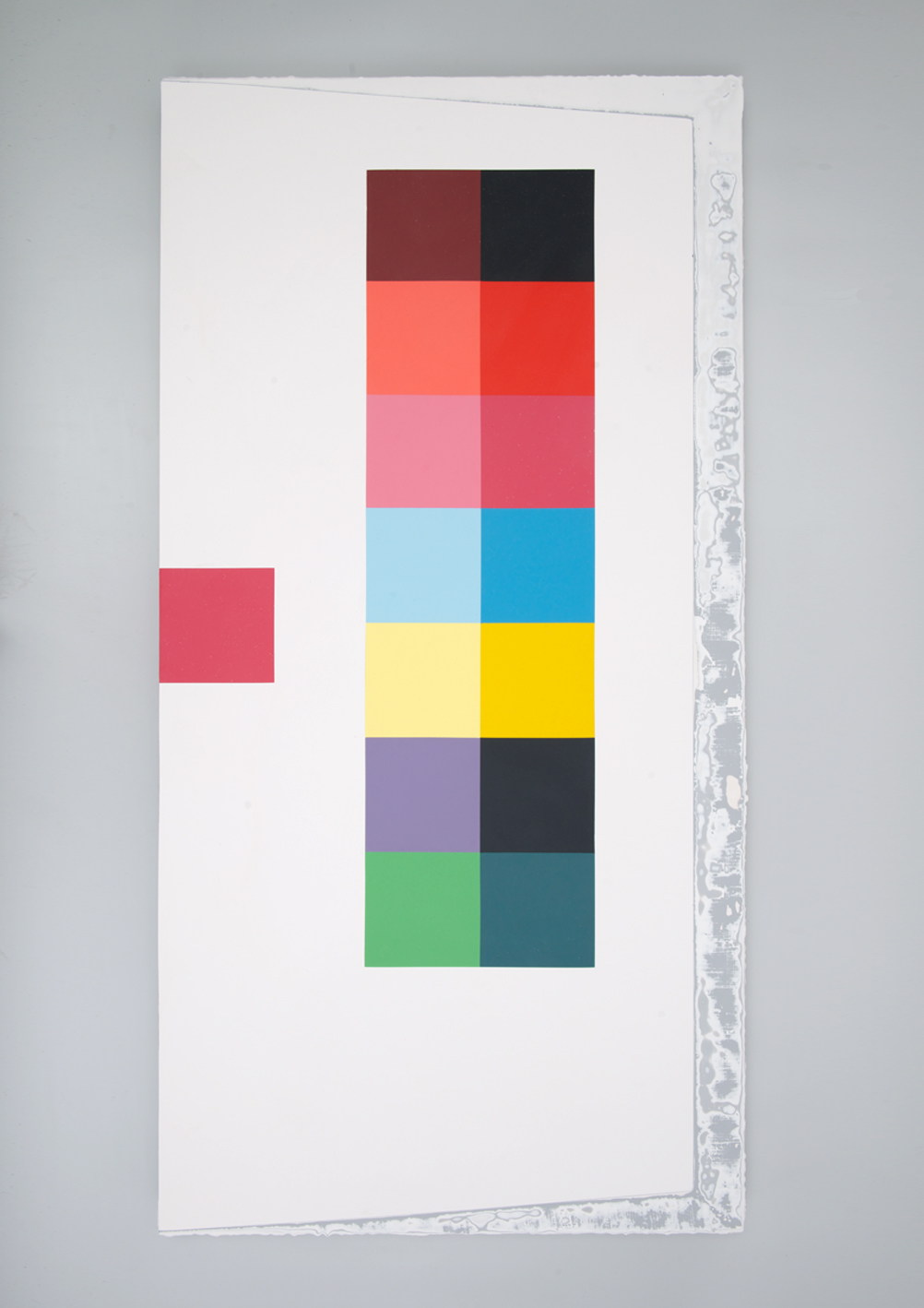 Evans also displayed many works on paper that juxtaposed traditional colours with modern-day equivalents; for example, ‘Blue Verditer/Dulux Trieste’ [2014] demonstrates similarity and difference, and a potentially nostalgic nod to history. That Evans is also a Paintings Conservator at the Royal Pavilion and Museum in Brighton may come as no surprise.