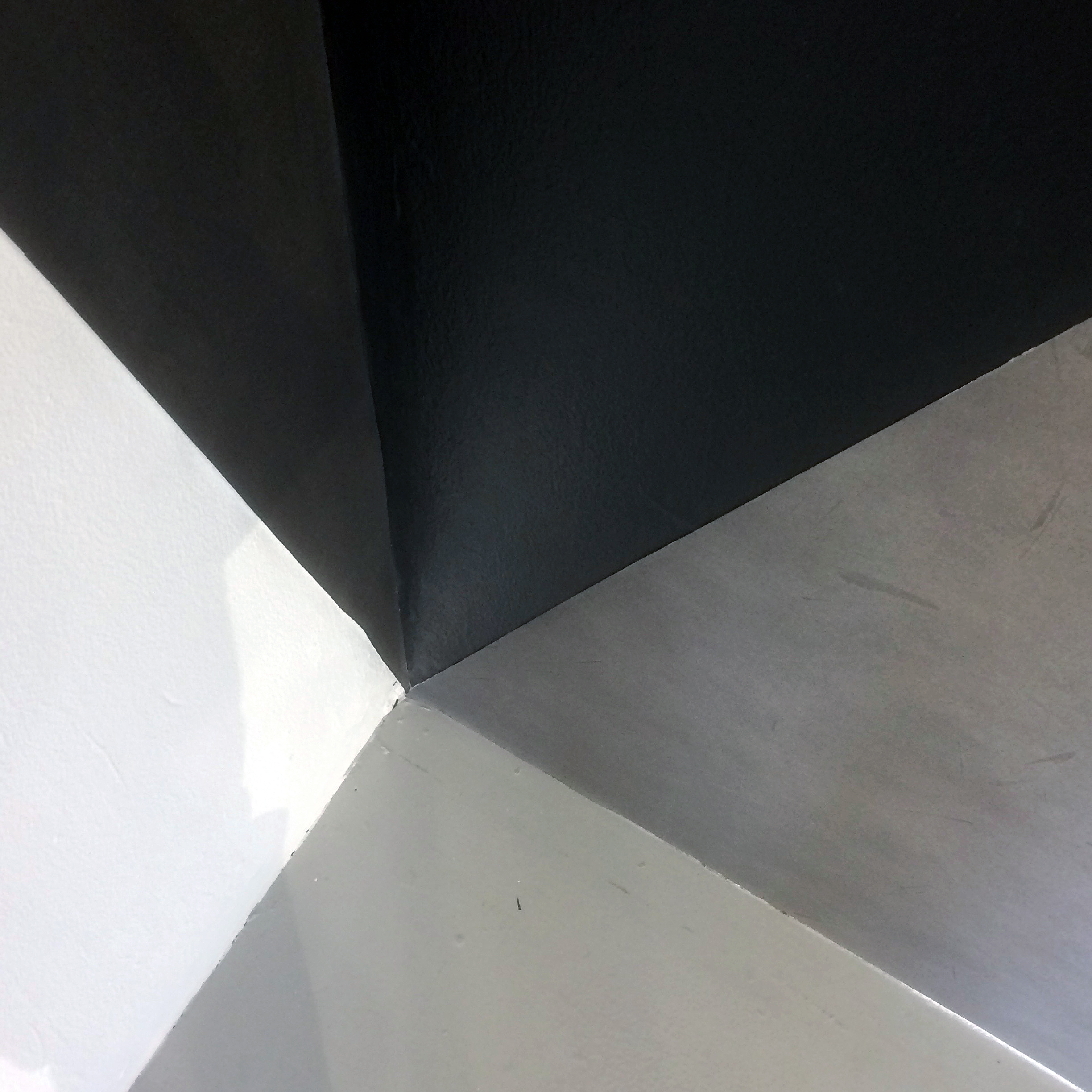This poignant and disturbing element instinctively sensed in the work became more overtly humanised when O’Donnell explained that his visual language and sparse imagery had developed from a visit to the Jewish Museum in Berlin. The Libeskind Building, known as the Holocaust Tower, made a deep impression on him. Subsequently, O’Donnell worked for a year drawing in charcoal, developing his ascetic and sombre, shape-shifting imagery. The most recent works in H-A-R-D-P-A-I-N-T-I-N-G are responses to compositions derived from various corners within his recently deceased father’s house. More concrete than words, the works could augment Gaston Bachelard’s ‘The Poetics of Space’, but with a singular sense of anonymity in the simplicity of forms that evoke universality rather than the personal idiosyncrasies of a private familial space – unless you were the author of the work.