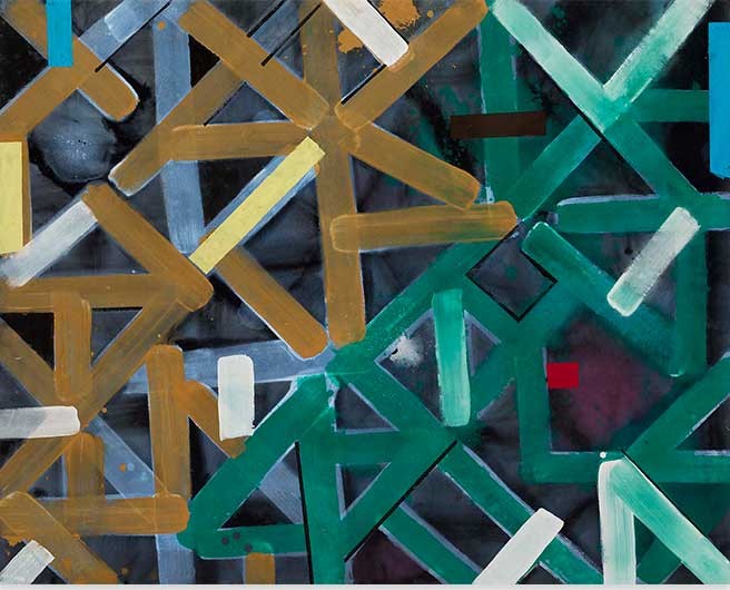 “Slox”, 1967, 122 x 183 cm, wooden rods, canvas and acrylic