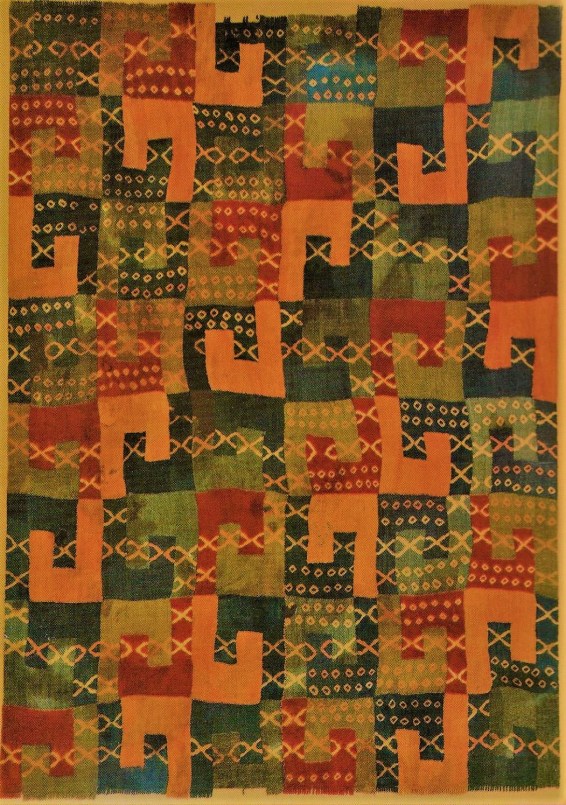 How does Albers compare with works from some of the many centuries-old disciplines of wonderful weaving from around the world? That also is very hard to say, for different reasons, because although I think it is interesting to speculate, it’s also very tough to consider work such as those made by anonymous Aztec or African weavers who had their unknown reasons and motivations for doing what they did in the way that they did it. I think some of these, such as the illustrations below, are truly great art, but it is presumptuous to guess too much on their motives, and even the best books on the subject are speculative on the development and thought behind their art. Let’s leave it at that; but it does not stop us enjoying weaving that is as astoundingly brilliant as these examples: