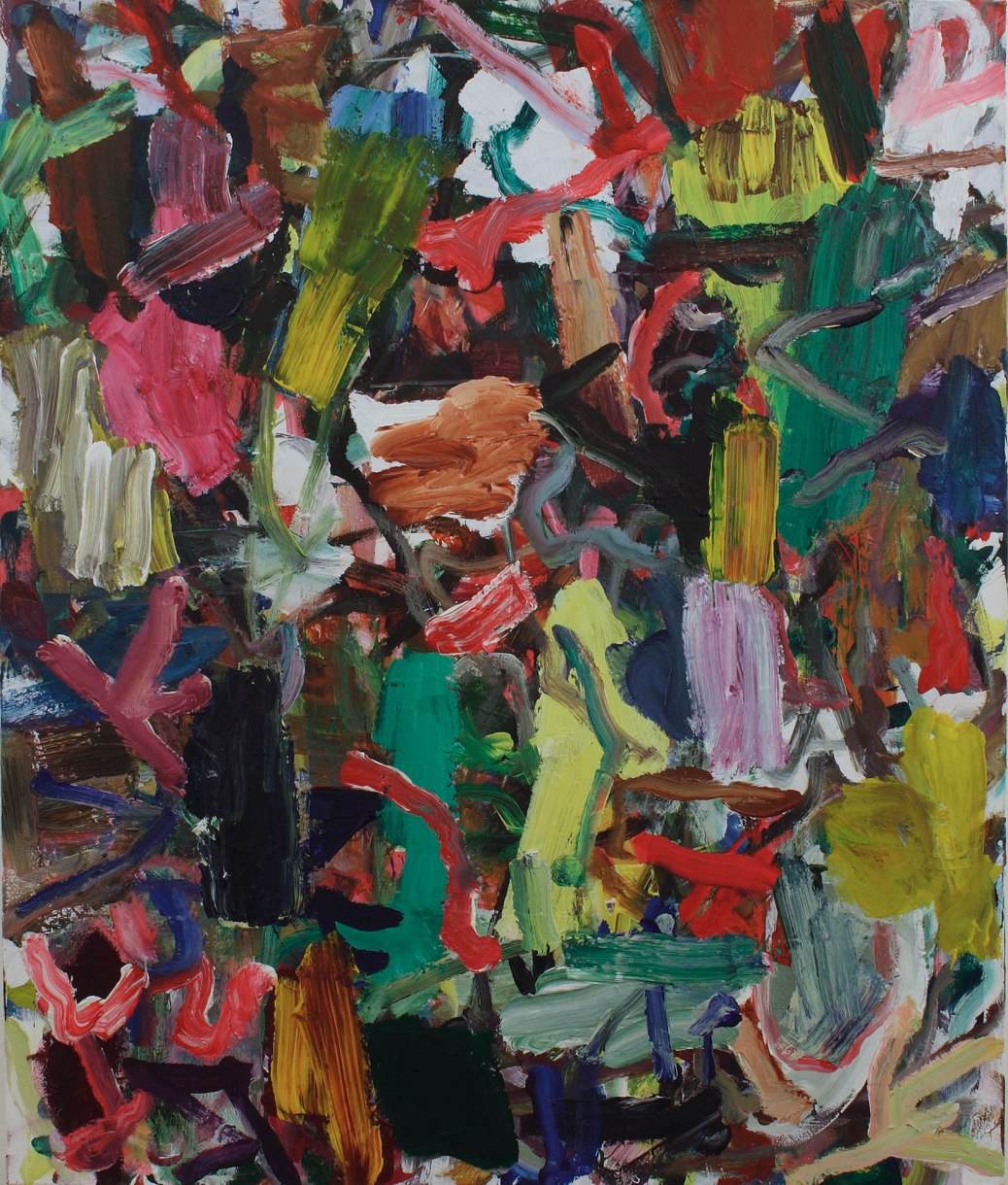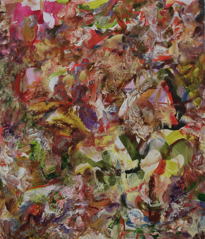 Yes, the ‘warring tribes within’ thought is important to me. I really find a lot of value in incoherence, contradiction and opposition. I think that conflict is necessary to something more vital and whole and I need that friction to make my work. I am also really interested in the ‘category of the ugly’ (as Adorno wrote about), notions of good taste (no thanks) and finding value in visual decisions I make that I might have perhaps once dismissed as a big mistake. I like it when I hit the bum notes and have to move with it… I also quite deliberately encourage this chaos or imbalance… The whole work has changed with the smallest of moves and it asks me, what next? So it’s not correction; it’s moving with the ‘error’. (Yes, I do go into the studio late at night at times. I’ve got out of bed to work in the night too as my studio is in my flat). Thinking about the idea of going against one’s own ‘taste’ (that word makes me spiky) I create a bit of horror for myself. If it ain’t broke I break it and don’t fix it. I push the painting over the tipping point till it becomes an entirely different entity. I build paintings out of these paintings. They flow into one another but also cause these episodes within the whole. It’s the opposition of flow and the episodic that interests me too. It’s not always been like that. I’d say in the last six years I have pushed against certain visual ideas that I was maybe too comfortable with – habits and assertions. “Girl Gone Bad” was an important painting for me in that I really dislike it. I find it hard to look at. So I value it more than the work I ‘like’ or feel somehow I recognise more. It challenged me in that it looked like a stranger in the studio, and it got rid of any silly idea that I thought I might know what I am doing. I don’t think this is very popular with people as an idea because we are expected to be completely on it with a narrative about our work. For me it all gets a bit too much like one has to be a defence lawyer and before you know it you’ve lost the richer ‘picture’ and learning. It’s nearly 1am and I could go on and on really. There is a lot to say. I could even go into the studio for some mistakes but I must sleep. I need to return to this thread as I have not managed to read all the comments yet and it’s really interesting and I feel I learn from you all. I’m really grateful to Robin for inviting me and bringing us together to ‘talk’ on line. Best, EC