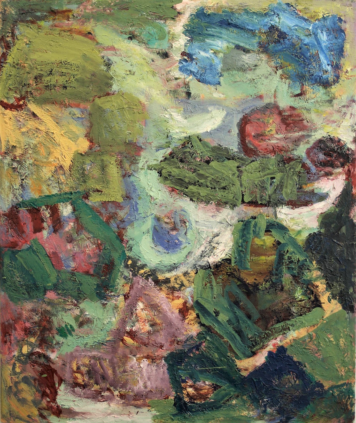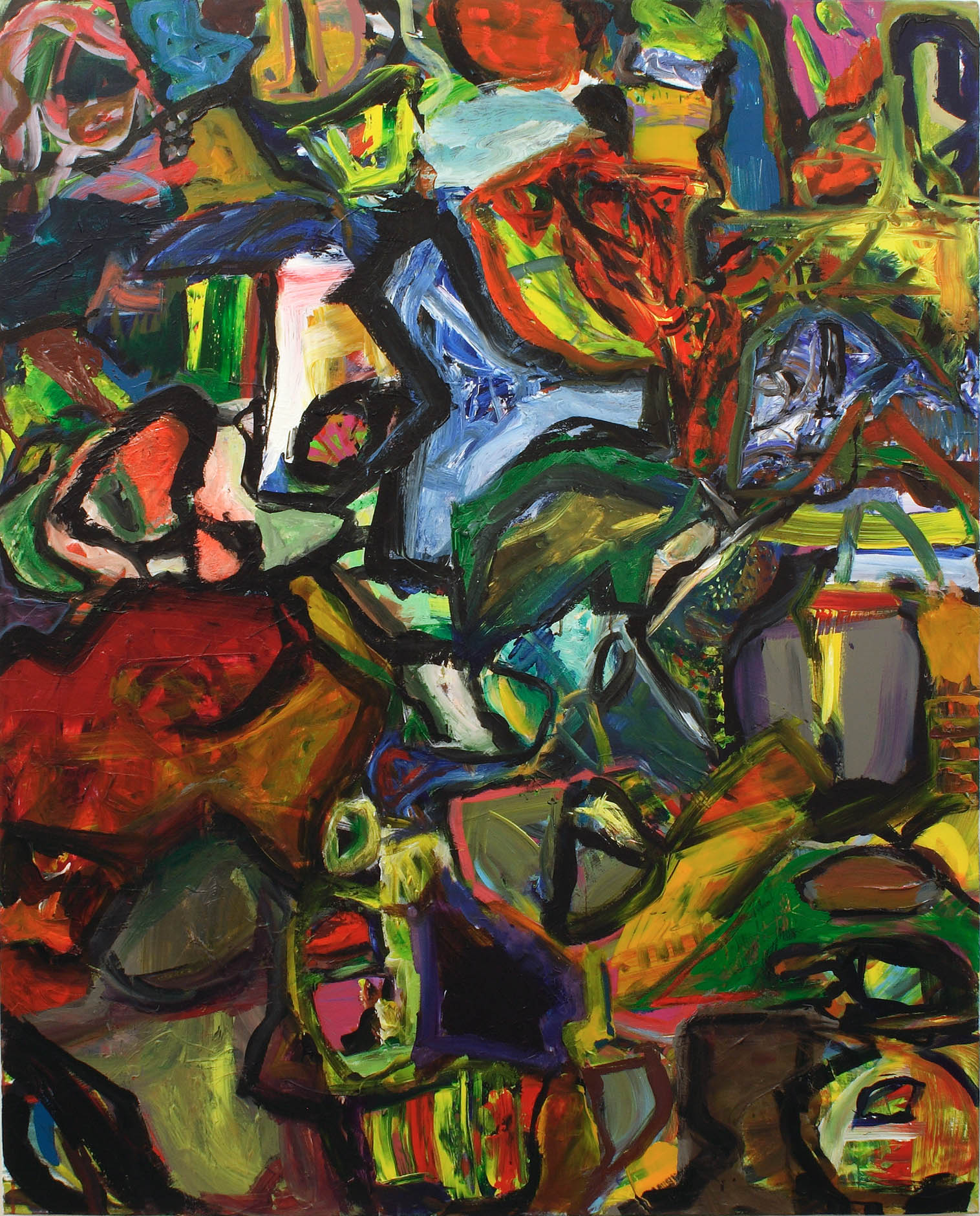 There are, of course, variations in the approaches I chose, including your own work. I like it a lot, but I think yours is a borderline case in point – the case being for paintings that look at complexity and semi-three-dimensionality as ways to address the wholeness of the canvas’s surface without known-about references to two-dimensional design. Some of the work here deals with these conditions (not necessarily to be defined as non-figurative – I think that issue is a “red herring”) very spontaneously, in non-frontal, non-geometric ways that open up a complexity of spaces (how about John Bunker’s work?). And although these works might carry with them aspects of both abstraction and figuration together when dealing with these new ways of activating content, we should keep turning things around to see how they develop. What I personally think should be avoided is using the means of figuration in two-dimensions.